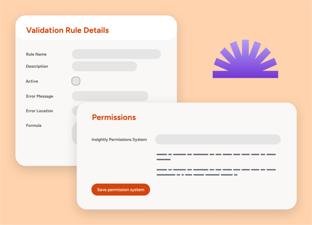 - Validation rules & advanced permissions: Preserve data integrity, enforce data quality, and control access with role-based permissions.