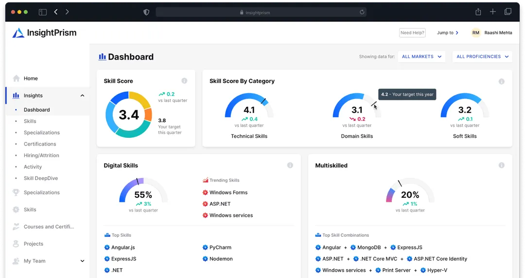 InsightPrism provides actionable intelligence to drive impact by automating insight generation for top decisions. It significantly reduces manual efforts for reviews, aiming for an 80% reduction, by using AI/ML to identify patterns and recommend key executive actions. The software offers an executive dashboard view of the entire talent supply chain, presenting timeseries data, actual vs. targets, and top-down focus areas. Its AI/ML algorithms decipher hidden patterns, enabling on-demand reports and drastically cutting down time spent on data gathering and cleansing. Role-based intuitive dashboards support business decisions, with a focus on top-down, business driver-led insights. InsightPrism facilitates PPT-free, system-driven business reviews and includes external triggers and nudges to support recommendations, ultimately helping organizations build a digital-first, agile talent supply chain to accelerate profitable growth.