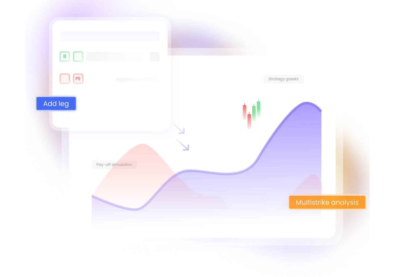 - Strategy Builder: Create multi-leg options strategies visually, view payoff graphs, simulate P&L across expiries and spot-price scenarios and modify legs before execution.