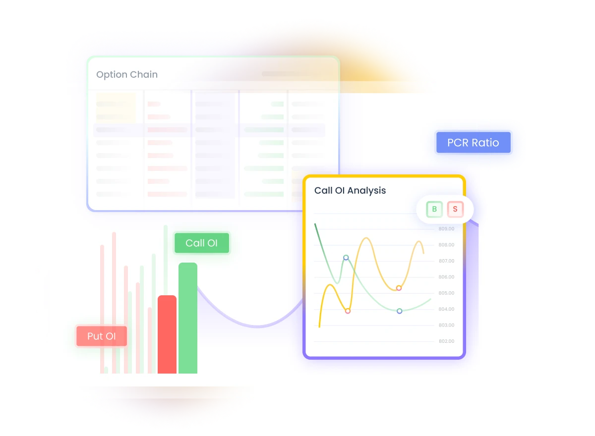 - Screeners & Discovery Tools: Options-specific screeners to filter contracts by OI, volume, IV, PCR and custom criteria for trade discovery.