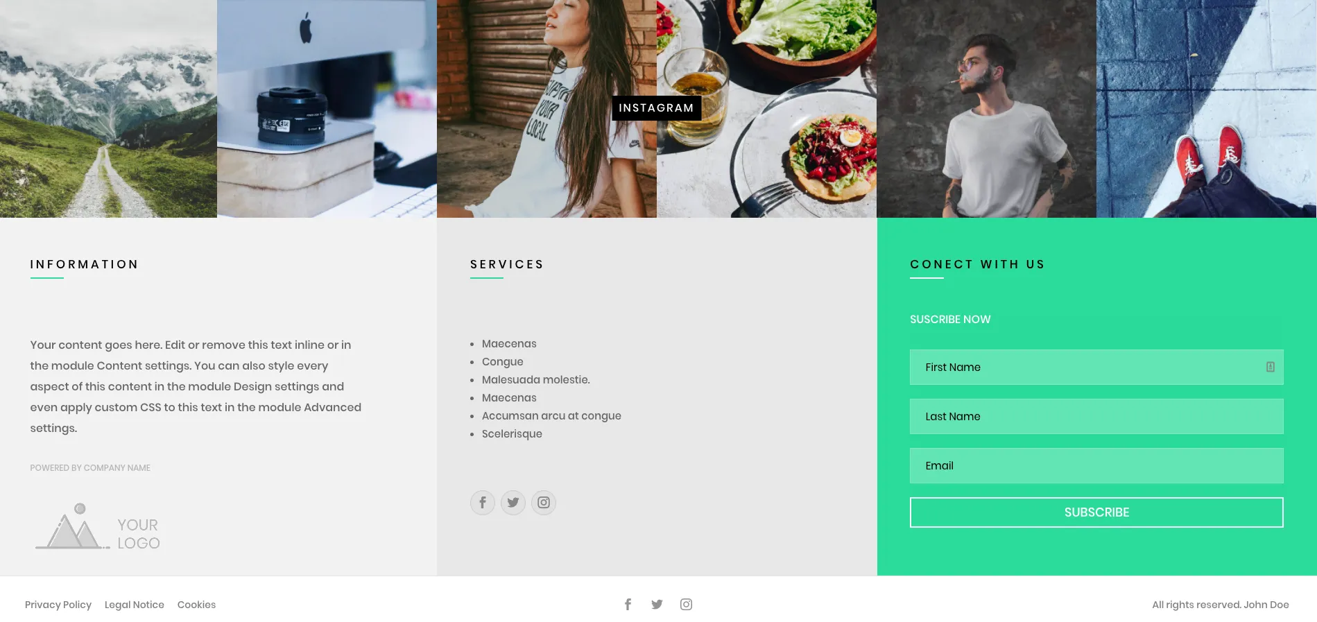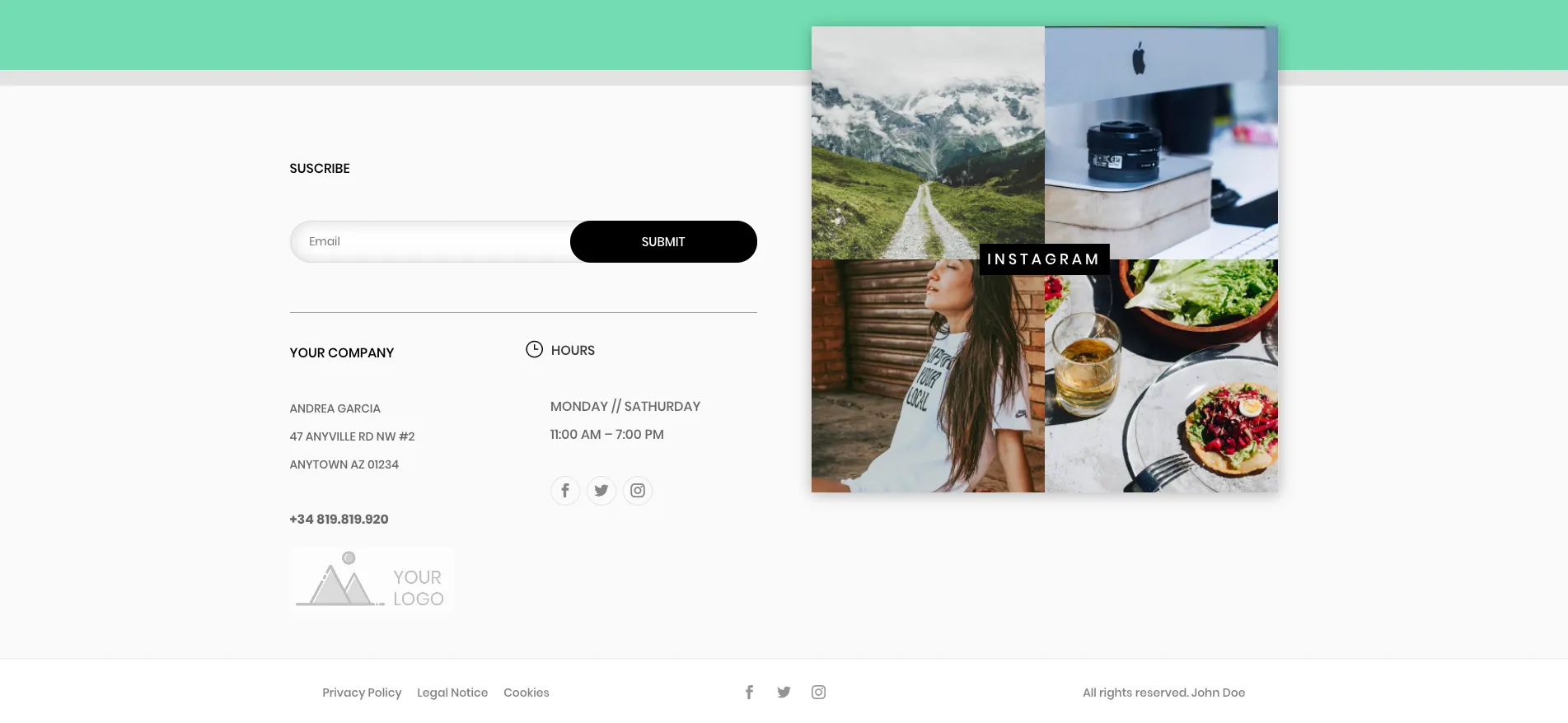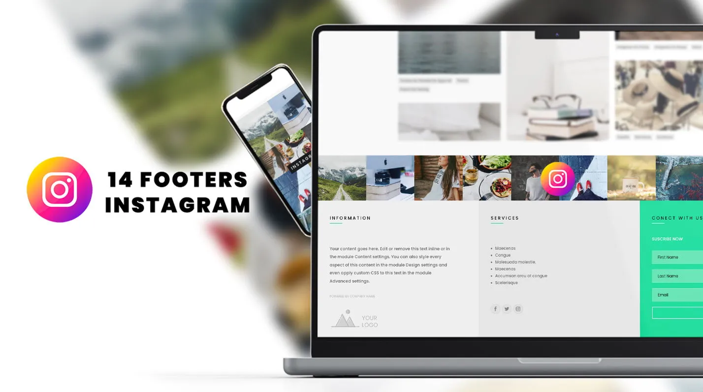 This pack includes 14 elegant and minimalist designs for any website. We have created different footers that combine the last Instagram posts with other elements as subscription forms, website links, logos, etc.