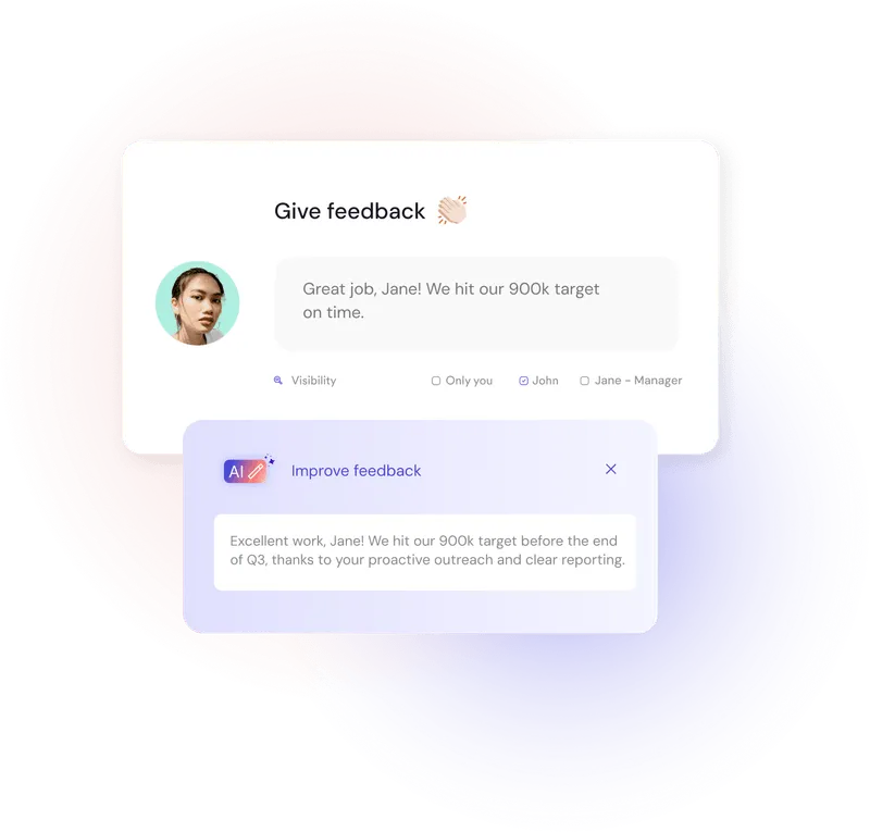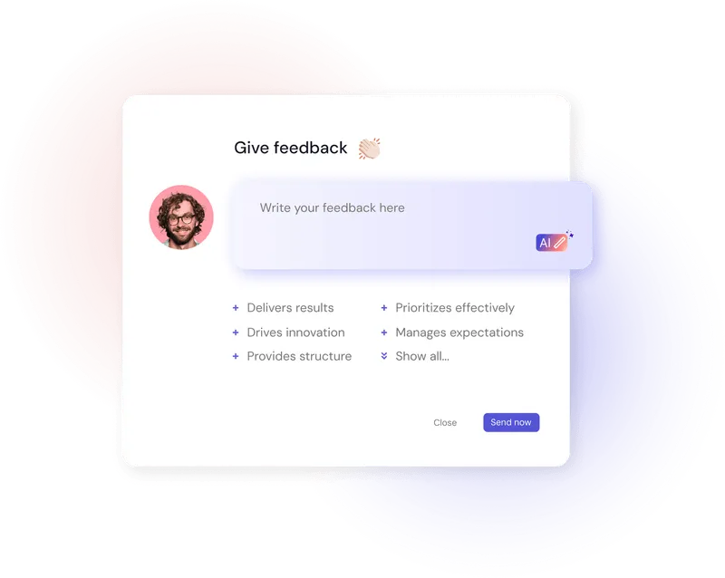 - AI-Powered Feedback Enhancements: Uses AI to suggest constructive phrasing, surface bias-aware recommendations, translate feedback, and generate summaries of strengths and growth areas.