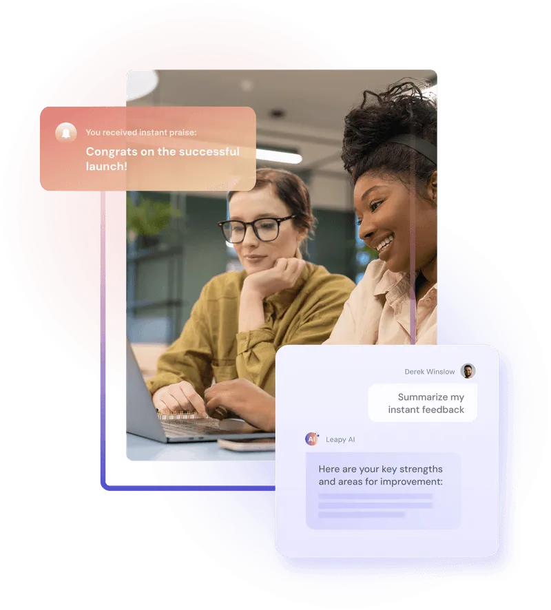 Leapsome Instant Feedback enables continuous, AI-assisted peer feedback and company-wide recognition to accelerate employee development and engagement.
