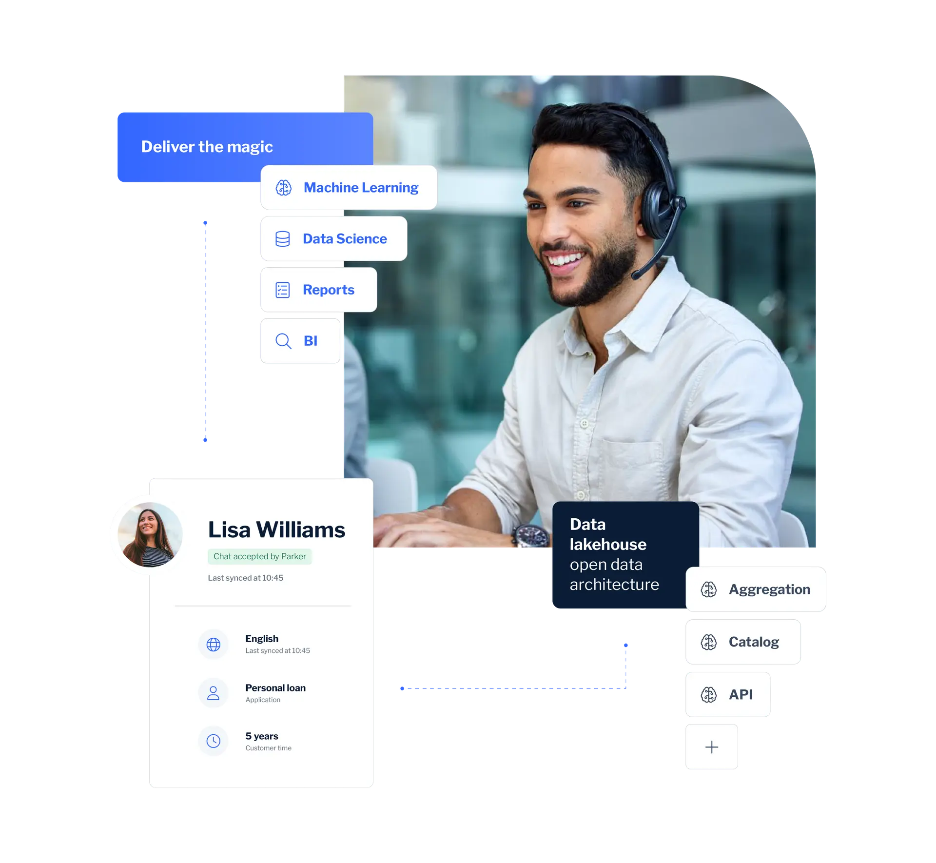 Unlock value and insights at scale The full centralized data platform solution can integrate with any data source within your bank and leverage the power of Big Data analysis. That helps to drive insights and AI/ML, allowing you to enhance the customer experience through automation.
