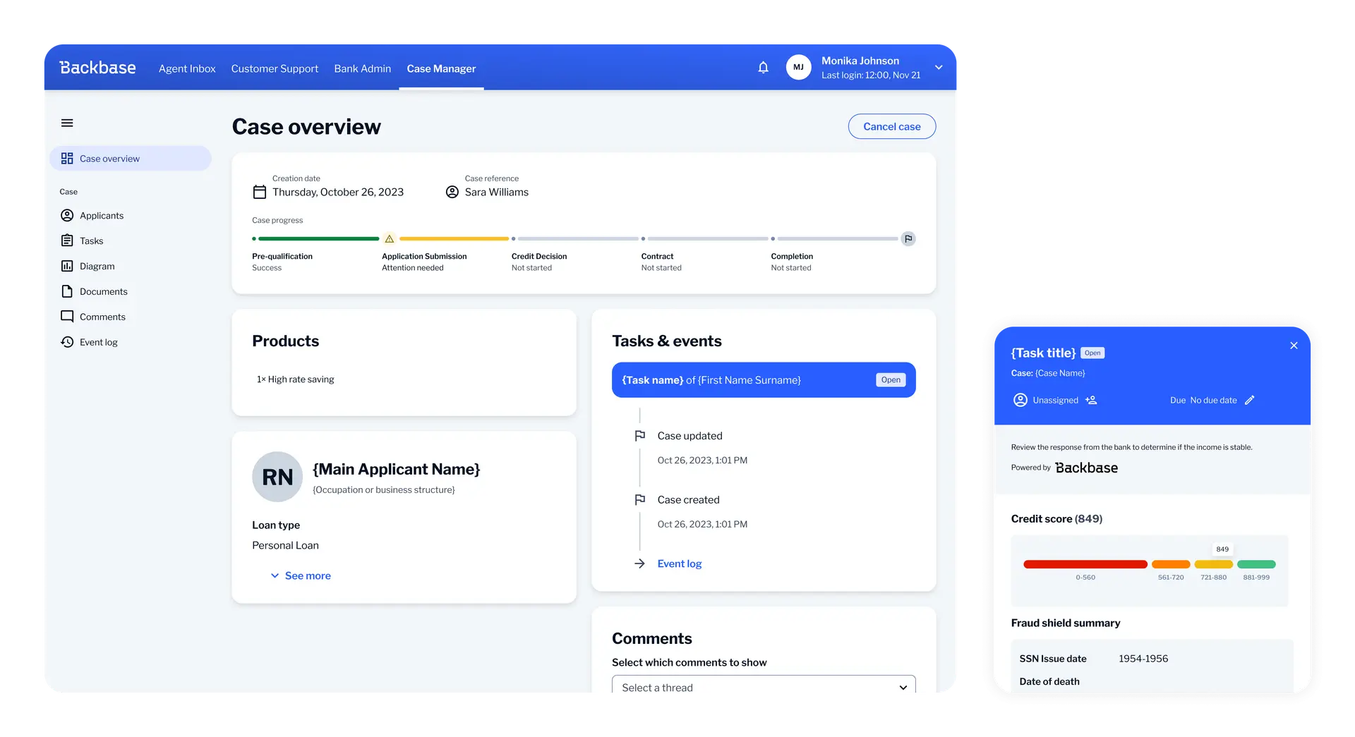 Pre-built journeys, powered by AI Go to market faster with pre-embedded AI/ML capabilities for journeys like onboarding and origination (AML, ID&V) and loan application credit scoring, as well as decisioning, financial wellness, credit scoring, spending patterns and insights, and many more.