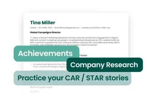 Improve your interview performance and gain confidence with our Interview Checklist. Stay organized and feel prepared in your responses, what bullet points are most relevant to discuss, and your understanding of the company – helping you position yourself as the perfect candidate for the role.