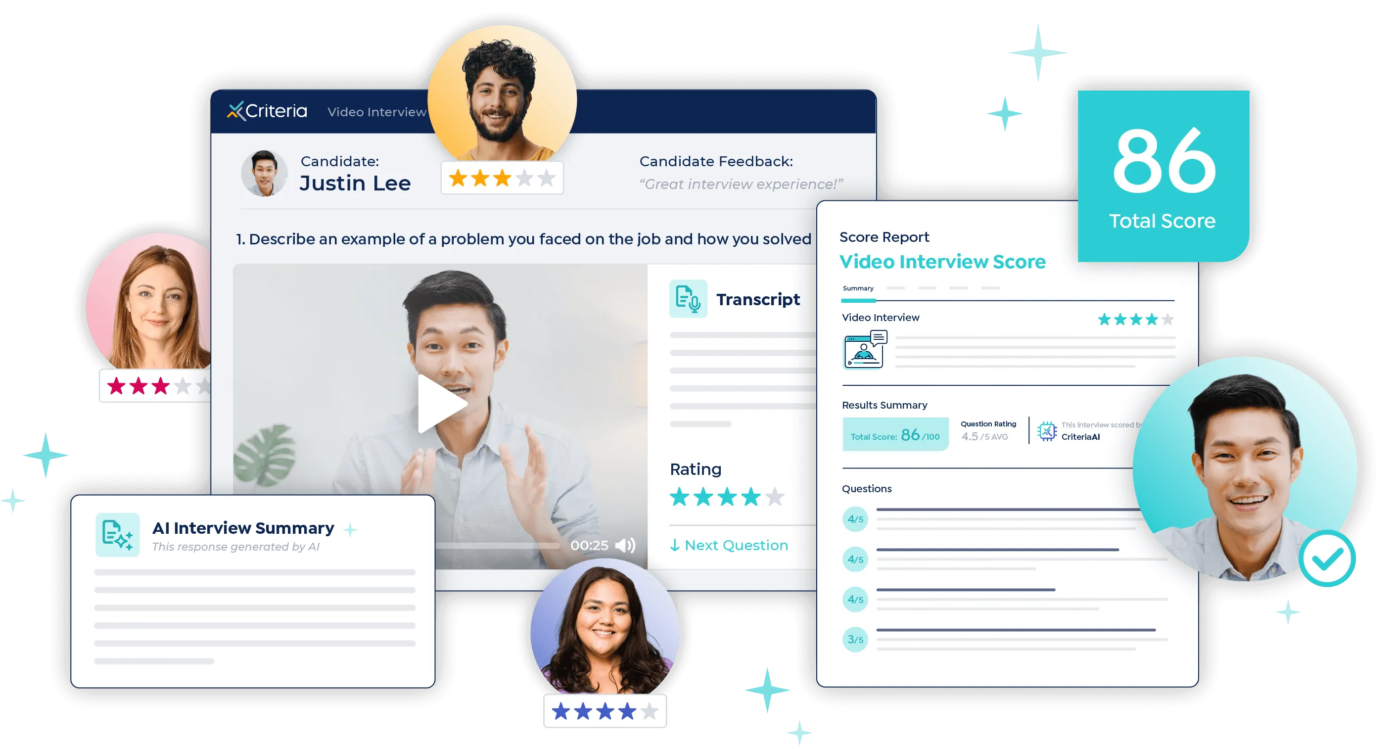 - AI-Powered Scoring: Automatically evaluates video interviews using transcript-based analysis for expert-level accuracy.
