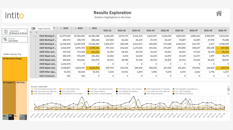 Intito Vision - Outlier Detection* leverages IBM® Planning Analytics with Watson and IBM Watson Studio for data analysis. It automatically analyzes data and detects values that are too high, too low or missing for any given dataset. Automated analysis frees users of manual tasks, enabling them to act on insights. Models learn from data analysis to help businesses understand data and make informed decisions.
