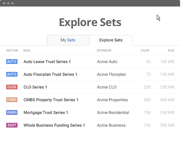 InvestorSet is a secure, cloud-based document library designed to streamline investor access to final deal documentation and ongoing reporting for fixed income securities. Built for issuers, arrangers, and institutional investors, it eliminates friction in capital markets by enabling fast, compliant, and transparent document distribution.