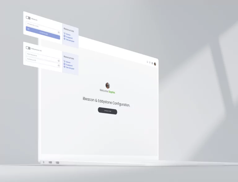 - Support for open-standard devices (Eddystone, iBeacon) with customizable Tx power and beaconing intervals.