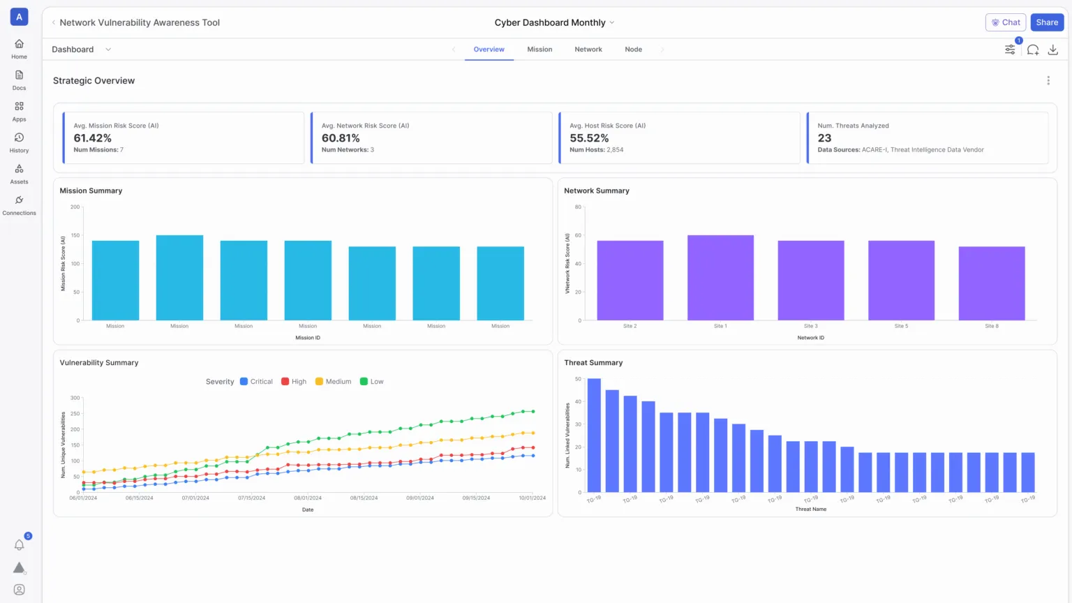 AI-powered cybersecurity analytics to detect threats, assess risk, and guide strategic response across networks and assets.