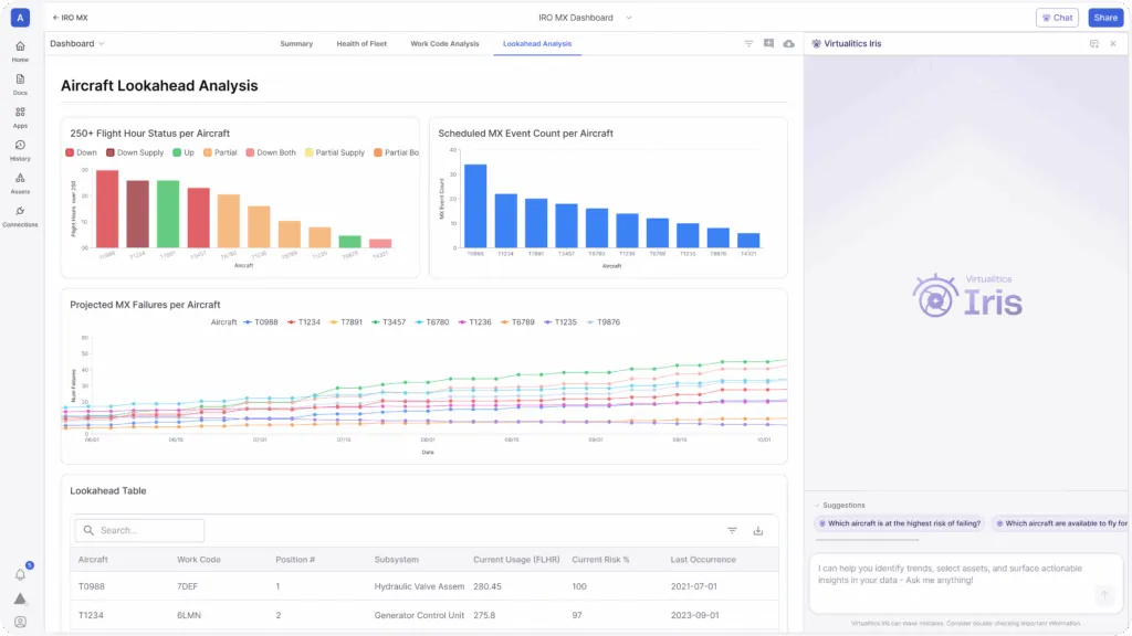 Virtualitics IRO Maintenance is an AI-powered solution designed to help defense and mission-critical teams maintain peak operational readiness. It predicts asset failures, analyzes resource constraints, and optimizes maintenance schedules using machine learning and simulation. Deployed across aircraft, ground vehicles, drones, and vessels, IRO Maintenance empowers teams to avoid downtime and respond proactively to operational challenges.