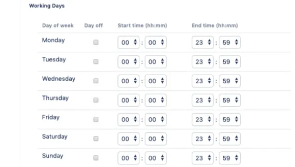 - Custom time zone, working hours, and holidays to ensure only productive time is accounted for and there's no confusion across the globe