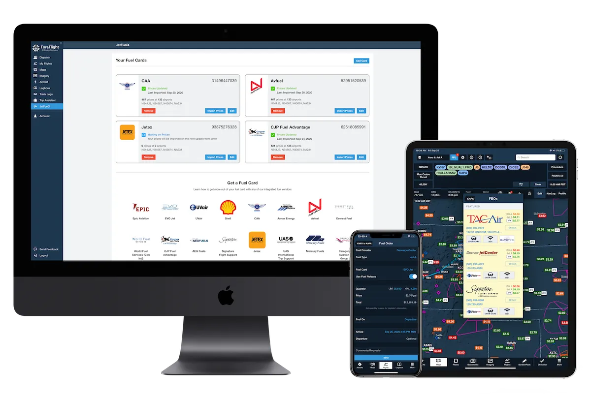 JetFuelX is included in ForeFlight Premium, combining hassle-free fuel card management with the industry’s leading flight planning and inflight solution. With ForeFlight Premium you can plan flights, compare FBOs, and issue fuel releases with quick access to all your JetFuelX contract fuel prices.