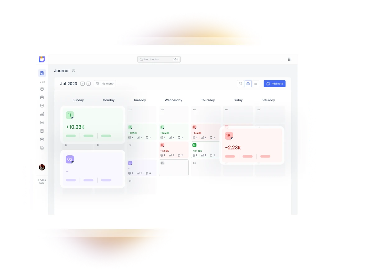 FYERS Journal is a digital trading diary specifically designed for active traders. It helps users meticulously document, track, and analyze their trading activities, fostering continuous learning and strategy improvement. The platform offers a user-friendly interface, allowing traders to record every decision, note market insights, and evaluate trade performance over time. Key tools such as a color-coded calendar, detailed trade notes, and the ability to attach images make it a comprehensive solution for reflective and disciplined trading practices. FYERS Journal empowers traders to build better habits, identify patterns, and optimize their trading strategies systematically.