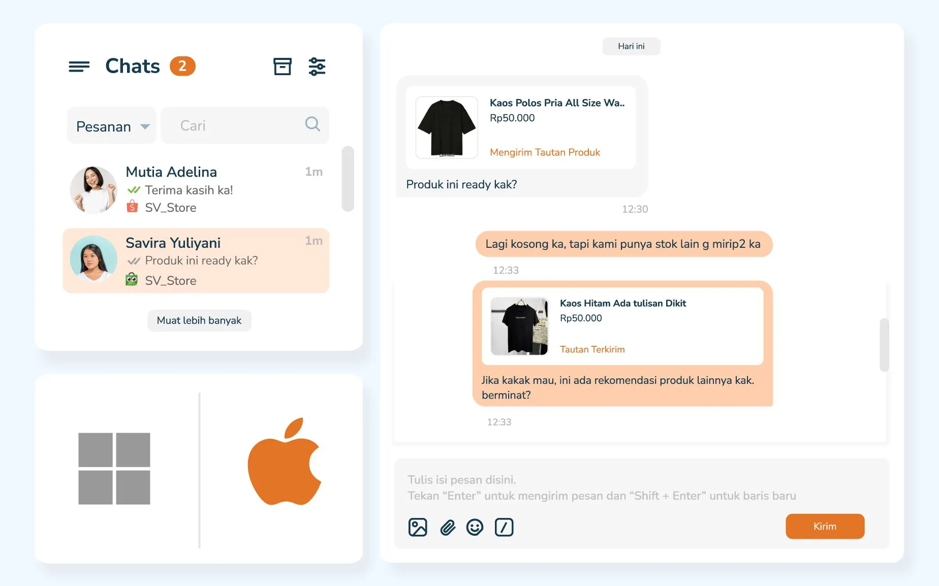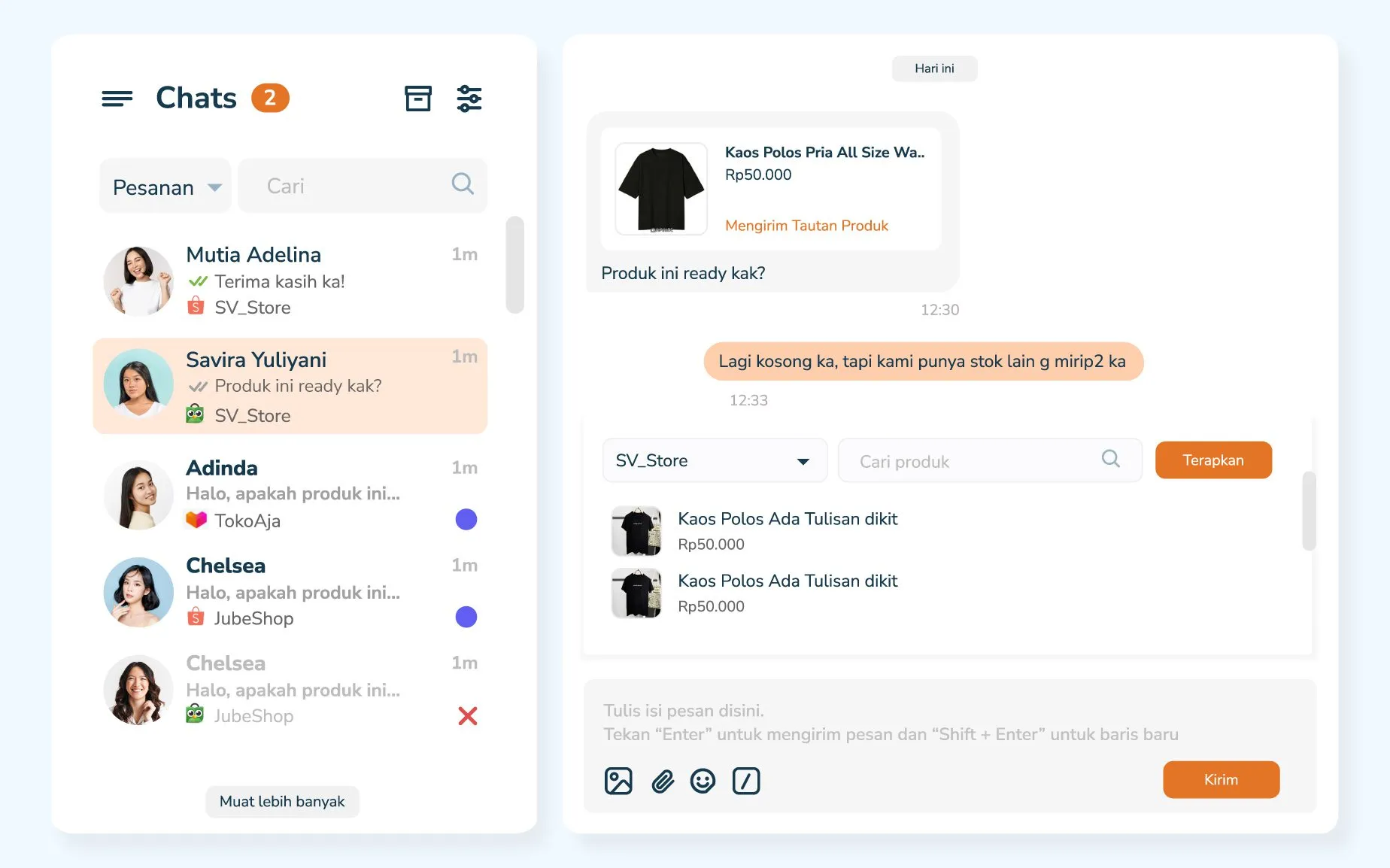 Jubelio Chat centralizes customer conversations from multiple marketplaces into one system, enabling faster responses and improved customer service.