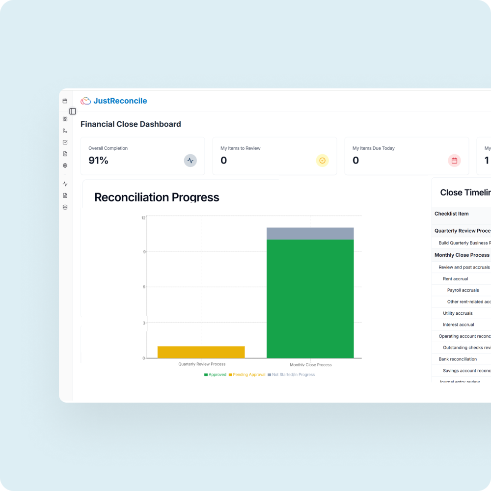 - Real-time Close Visibility: Replaces manual status updates and email chains with immediate insights into close progress.