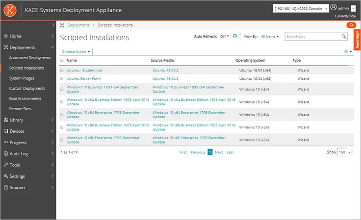 KACE Systems Deployment Appliance streamlines the deployment of system images, drivers, and applications for Windows and Linux environments. This automated, hardware-agnostic solution accelerates the provisioning of endpoints, from initial setups to ongoing updates. With centralized management and customizable deployment tasks, IT teams can easily manage large-scale deployments across multiple remote sites. KACE also simplifies system recovery and repair, reducing downtime and improving productivity. Features/Add-Ons: