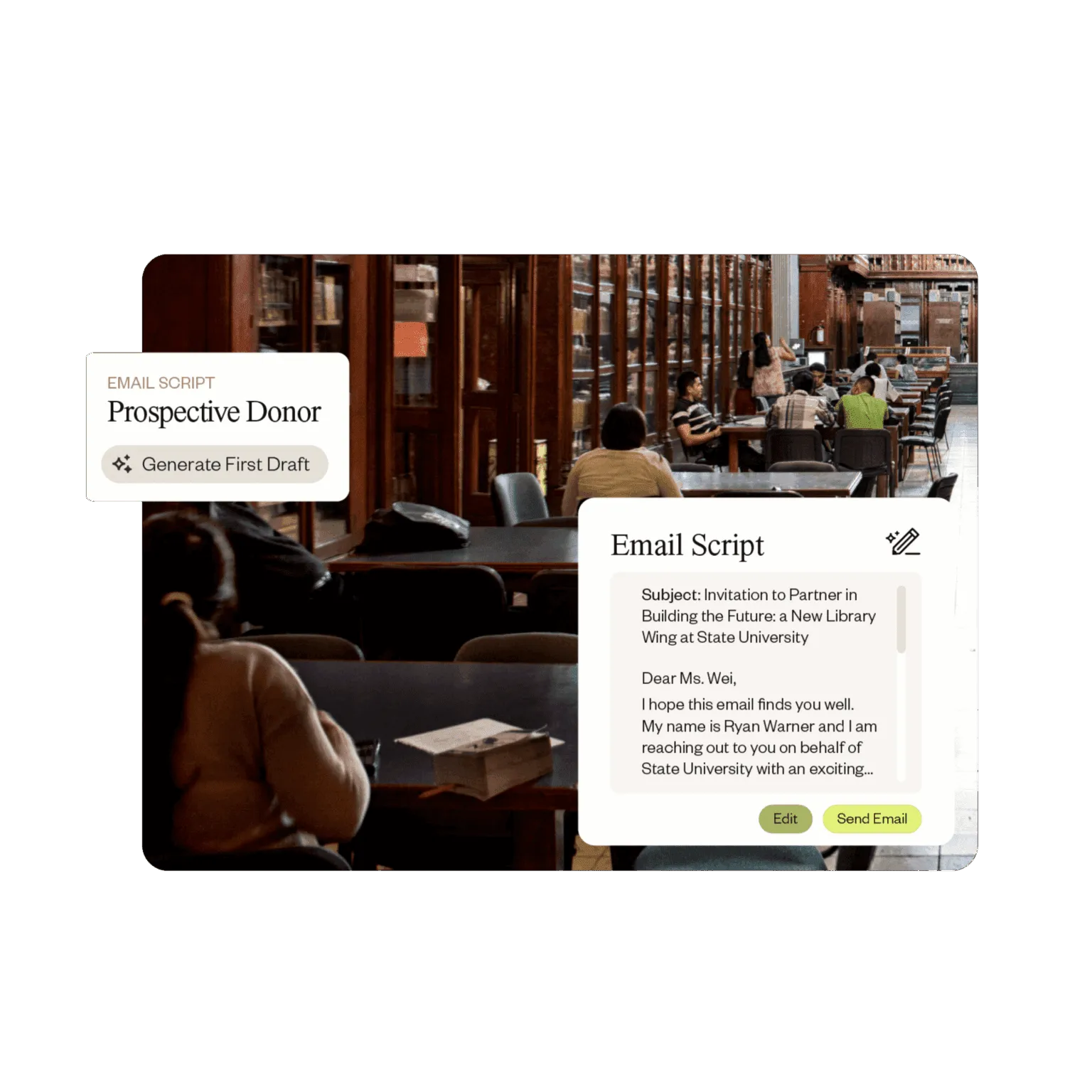 - Tone Modeling: Ensures consistent institutional and personal voice across all communications.