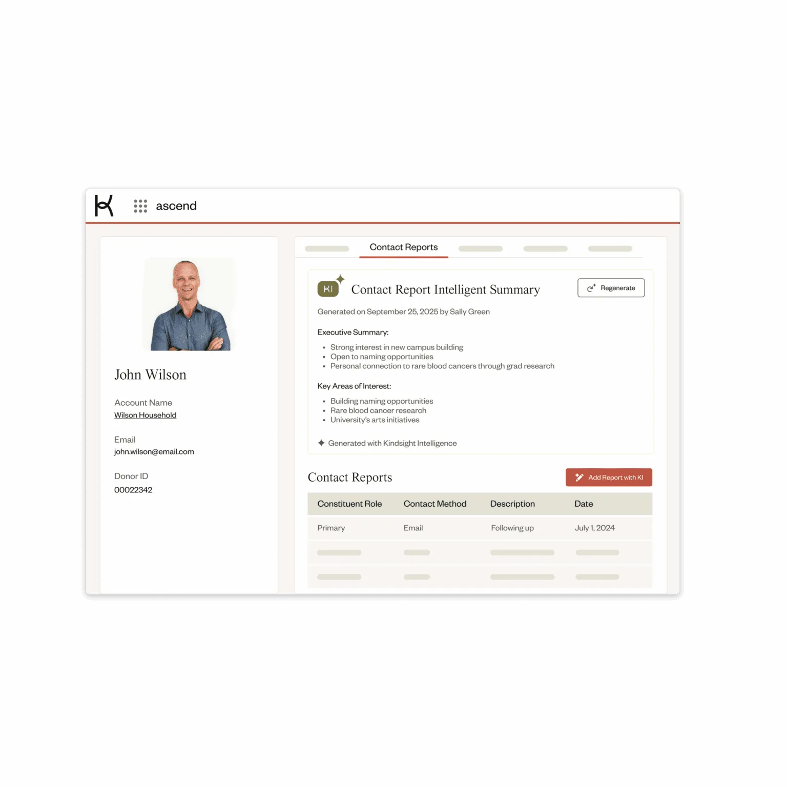 - One-Click Donor Summaries: Provides quick, actionable insights on any constituent.