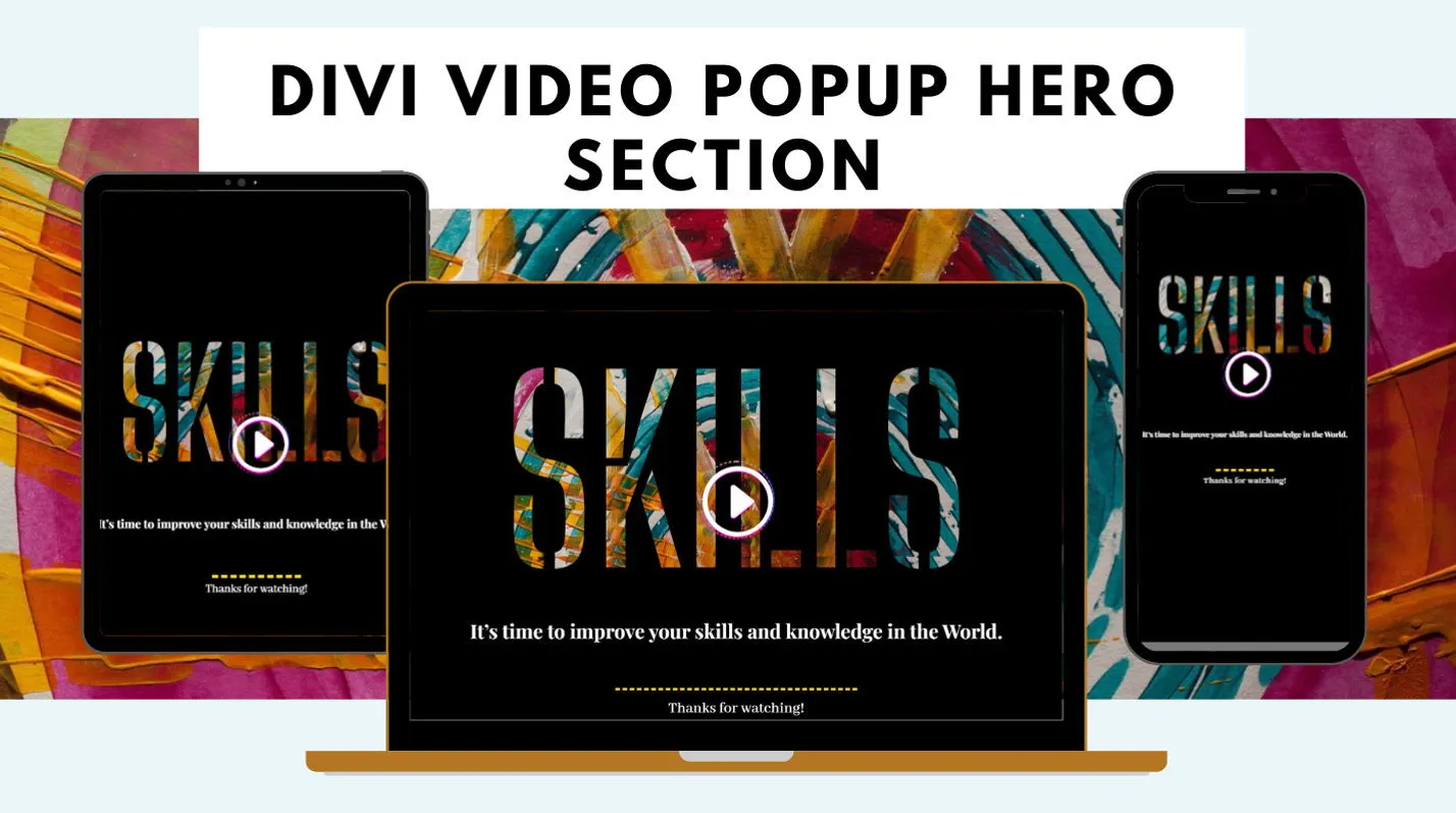 Divi layout with video popup, animated typing effect, and stylish background masks for modern hero sections.