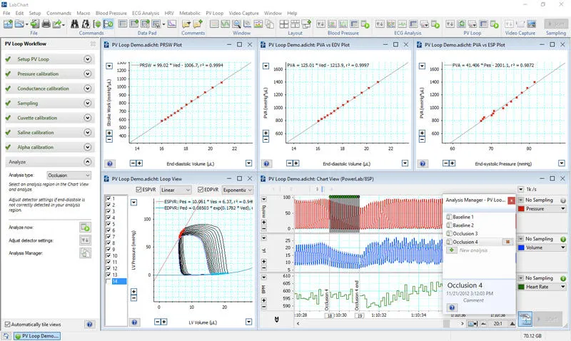 - Advanced Signal Analysis: Offers tools for blood pressure analysis, peak detection, PV loops, spectrum analysis, and ECG analysis.