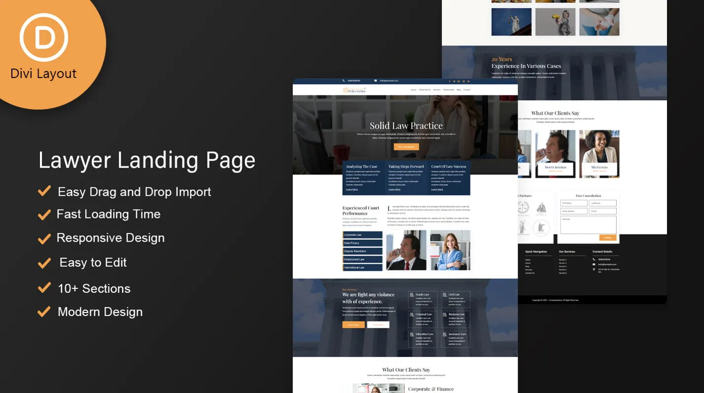 Professional Divi layout tailored for law firms, attorneys, and legal consultants.
