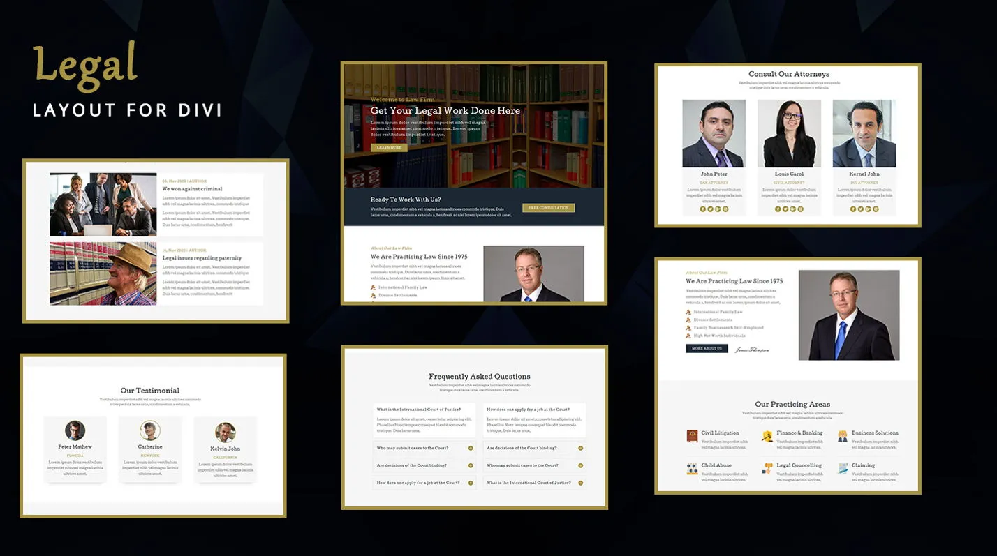 Legal is simple and flexible Divi layout page. This layout is suitable for law firm, lawyers, attorneys, advocate, adviser, consulting, legal adviser, legal solicitor, business, court.
