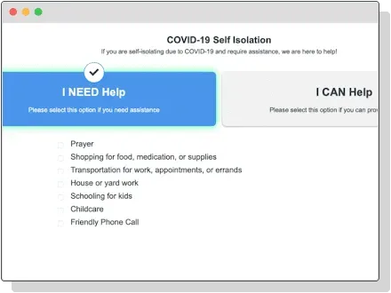 NeedConnect was created to help churches face the new challenges of serving and mobilizing your community amidst the COVID-19 pandemic, and now we pray it enables greater reach and connection as we look to the future. NeedConnect gives users a way to request assistance and offer to provide assistance to others in need.