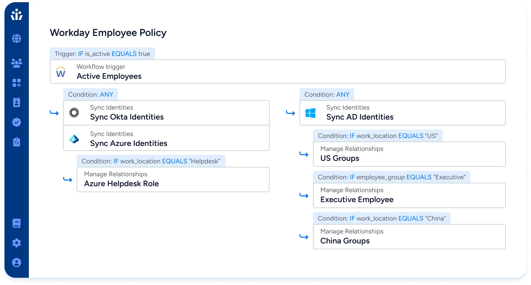 - Trigger Provisioning Workflows based on Joiner, Mover, and Leaver Events: Automatically provision new access for joiners, adjust access for movers, and remove access for leavers based on events from your human resource information system
