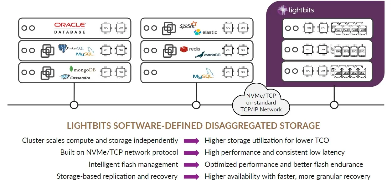 - Scalability: Supports horizontal scaling through the addition of Lightbits nodes, allowing seamless expansion as storage demands grow.