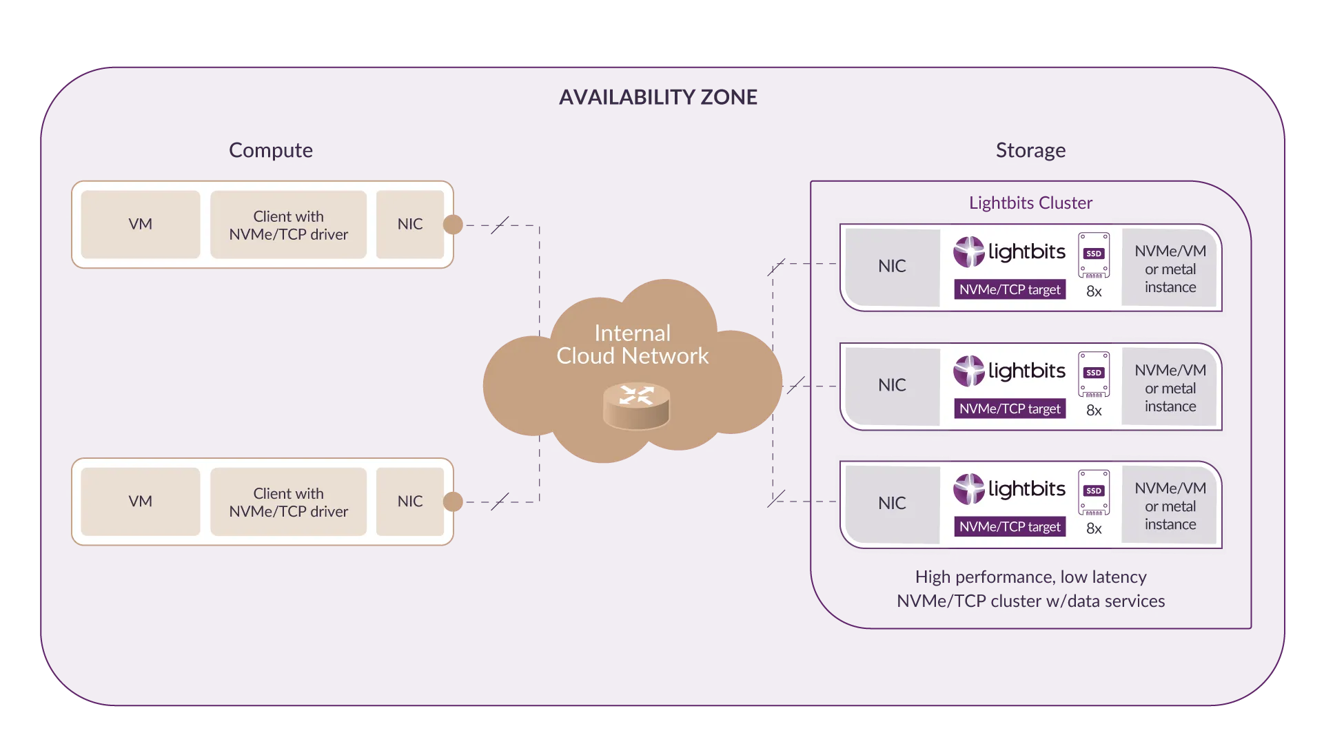 - High Performance and Low Latency: Up to 1M IOPS per volume; average latency <500 µsec; tail latency <1 ms; accelerates applications without adding cores or nodes.