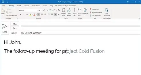 - Team members can create content significantly faster with predictive typing.