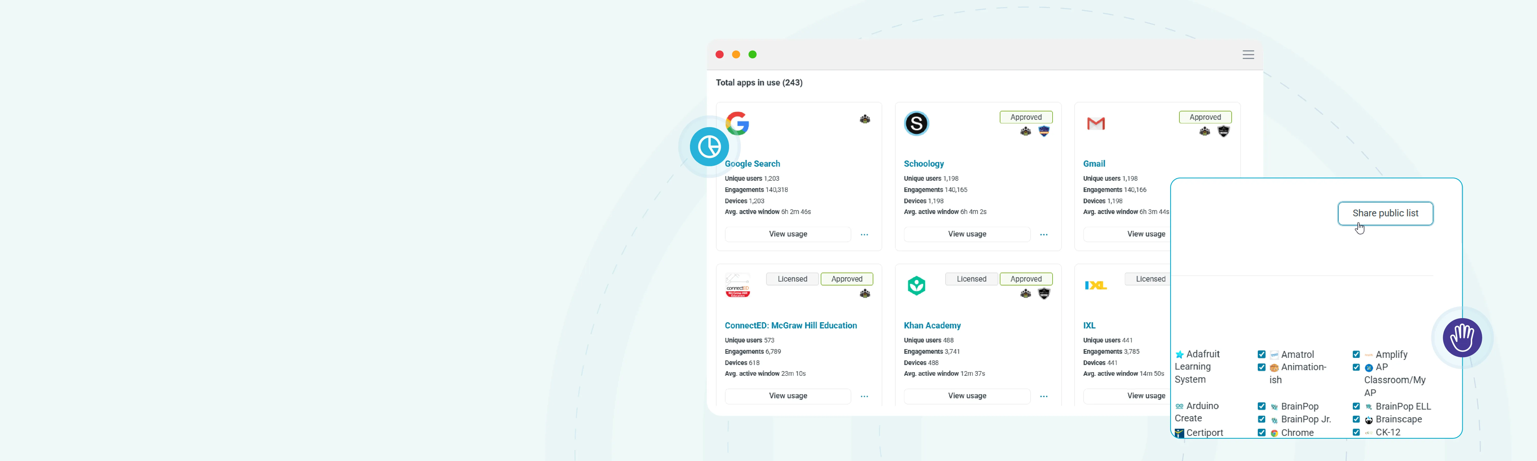 Provides schools with visibility and control over edtech usage, ensuring compliance, optimizing investments, and enhancing data privacy.