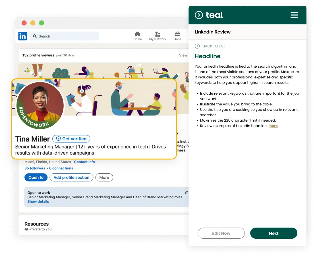 Our LinkedIn headline generator creates powerful, personalized headlines that highlight your professional brand and career goals. Together with our other resume tools, it instantly strengthens your profile’s impact—helping you apply confidently and get hired 58% faster.