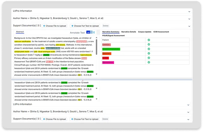 Automate de-duplication and ICSR relevancy assessment to process large volumes of literature more efficiently and minimize manual intervention.
