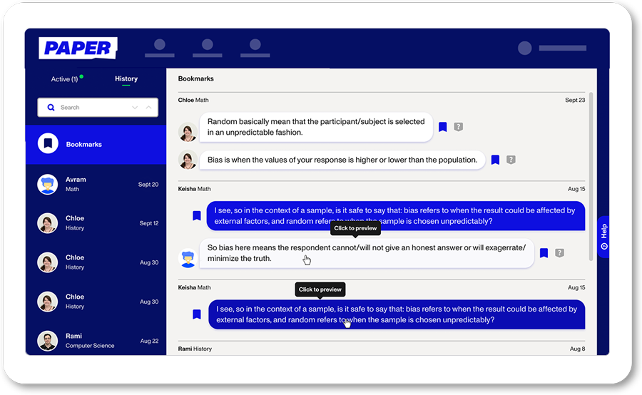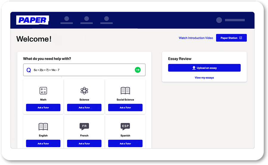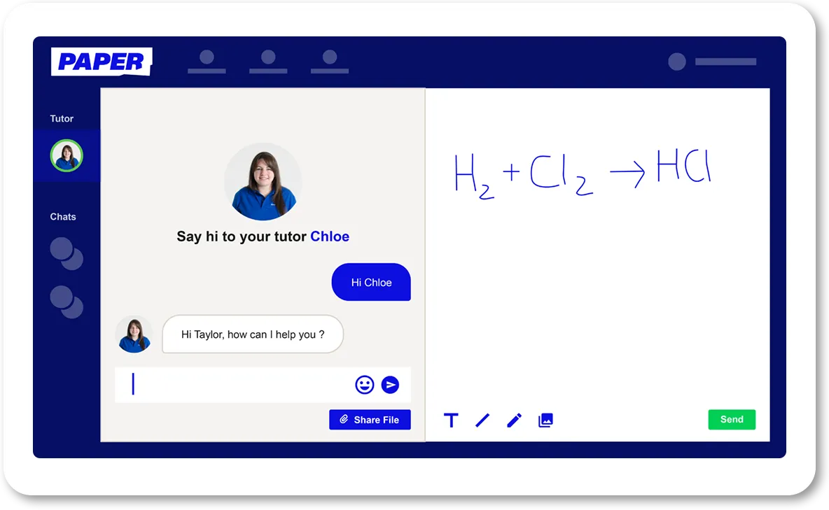 - **Help that’s an instant message away: **Students communicate with Paper tutors through chat so they feel like they have a friend they can text anytime for help.