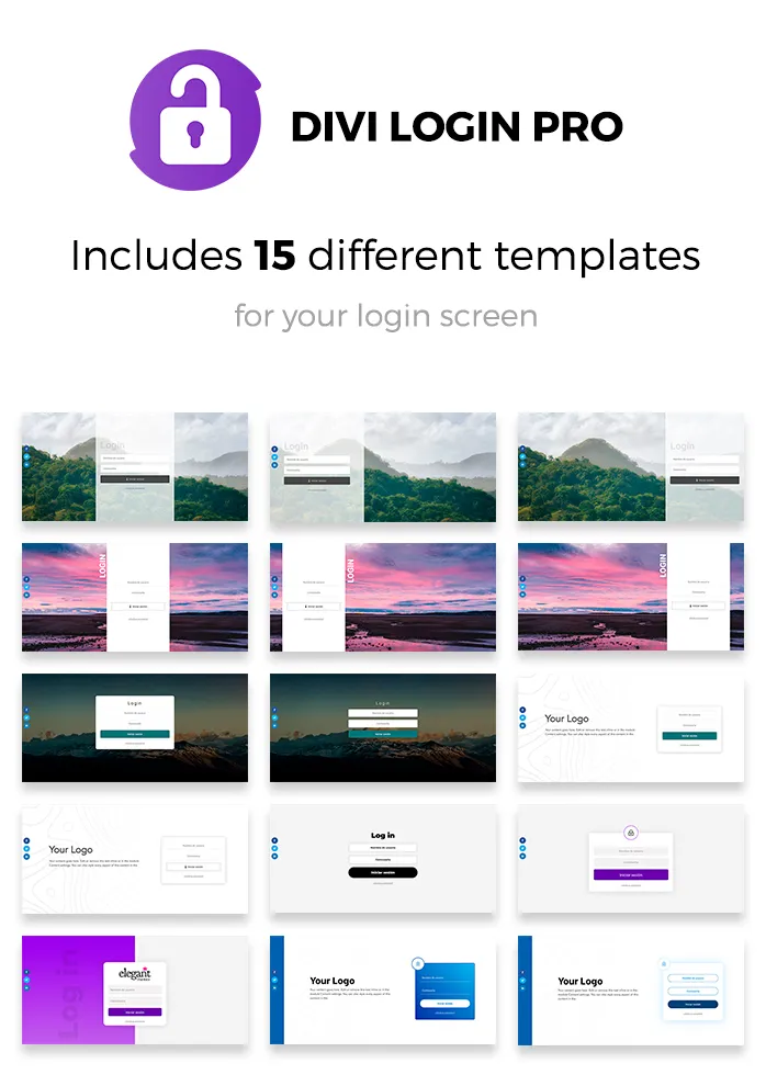 This is a simple but very useful extension. With it, you can create custom login pages for your clientes. It extends the default Divi module behaviour to improve the experience of your users. In addition, it comes with 15 different templates for you to use in your projects.