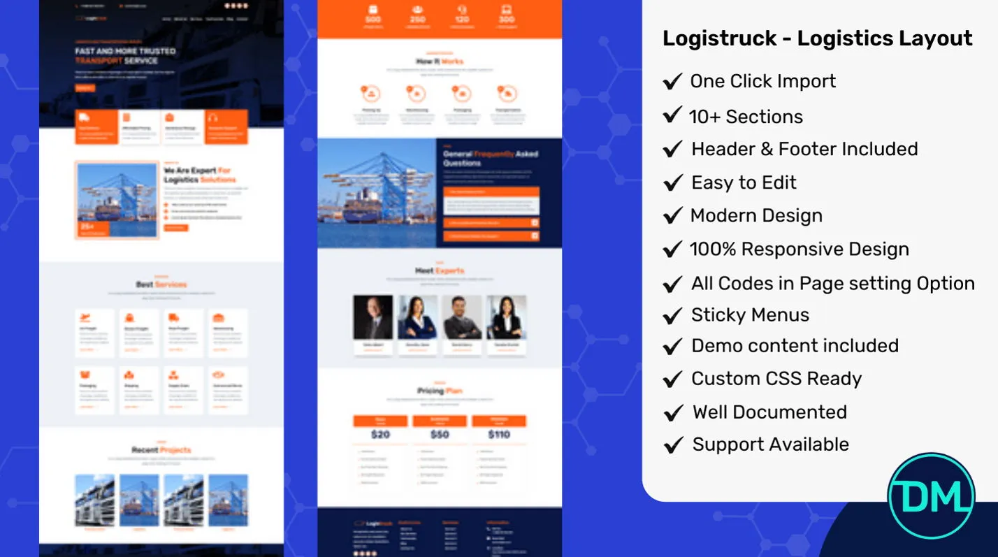 Logistruck is a Divi Layout specially designed for logistics, trucking, transportation companies, and small freight business. It comes with a uniquely designed and polished layout that is going to help your logistics, transport, Transportation, commercial transport business, Road Transport, Ship freight, Cargo Movement, air cargo services, trucking services, delivery, warehouse websites homepage to shine.