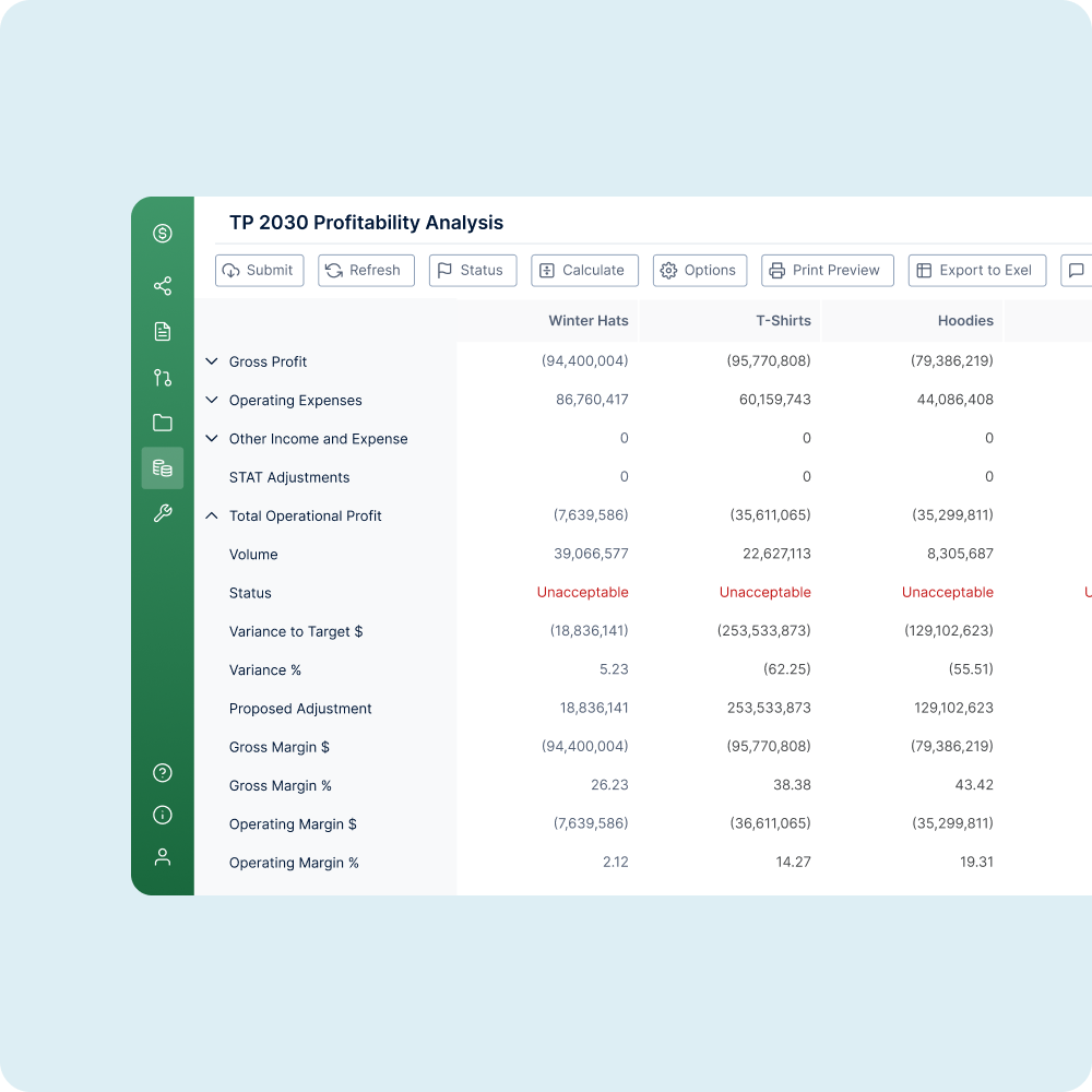 - Centralized Calculations and FX Management: Enables central calculation of transfer pricing adjustments, including foreign exchange (FX) impacts, for consistent and accurate results.