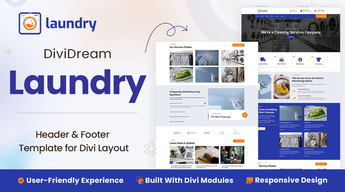This Laundry Services divi layout is responsive and works well on all devices, making it suitable for laundry, dry cleaning, dry wash businesses, and more. It has a stylish and classy design, with sections like About Us, Reviews, Why Choose Us, Unique Header & Footer Divi Layout, Team, CTA, Services, Contact form, Testimonials, Hero Section, and Clients. You can also easily display your blogs or news updates with its modern features. It’s a great choice for anyone looking to build a professional-looking website on a low budget, just a click away!