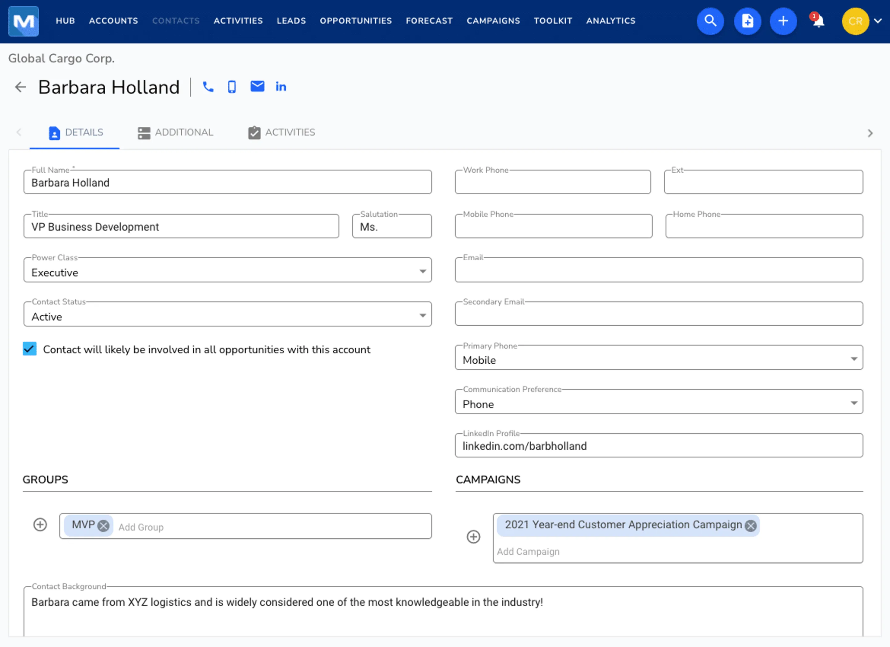 - Opportunity Tracking: Monitor sales opportunities and pipeline progress.