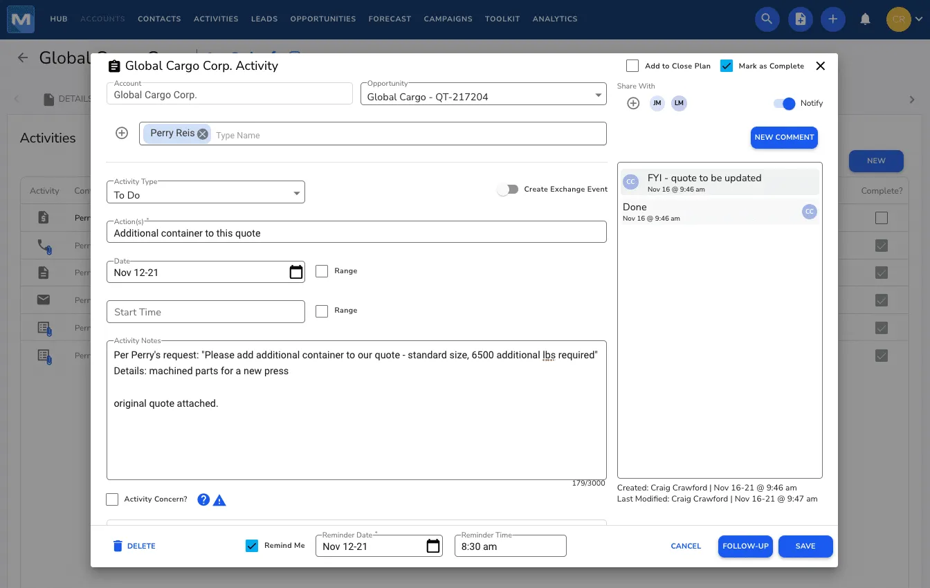 - Integration with Magaya Ecosystem: Connect CRM with Magaya Supply Chain and other modules for seamless workflows.