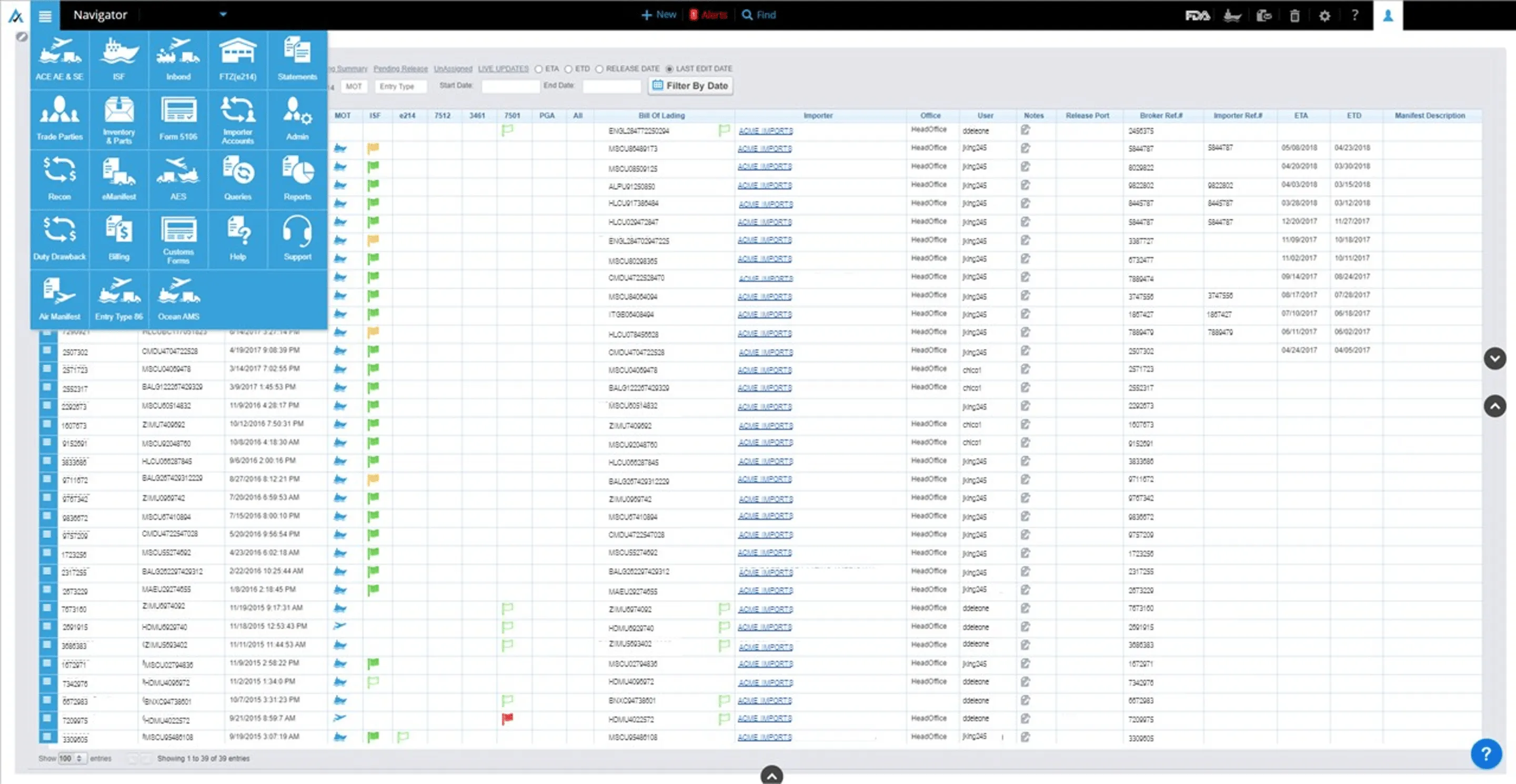 - Automated Customs Filings: Supports a wide range of customs transactions including ISF, AES, Entry Summary, and more.