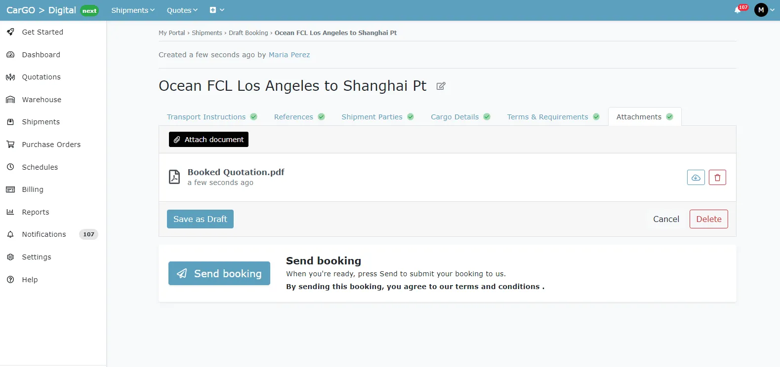 - Digital Bookings: Enables customers to book shipments directly, reducing back-and-forth communication.