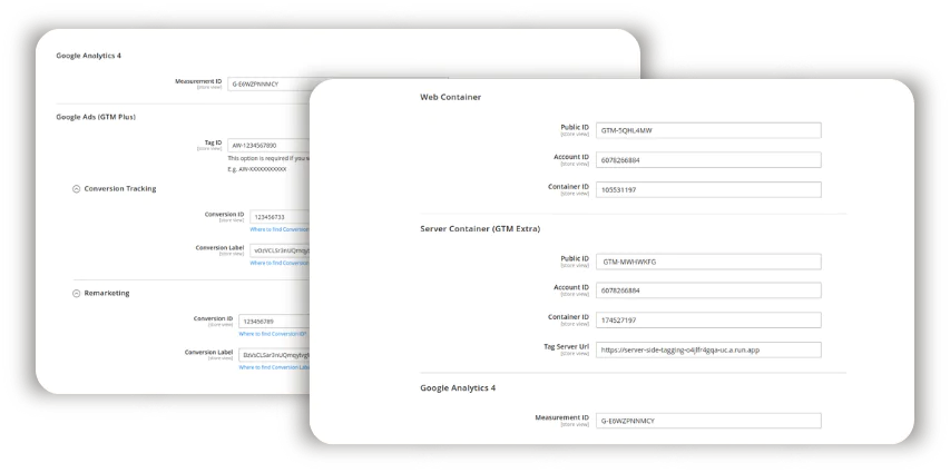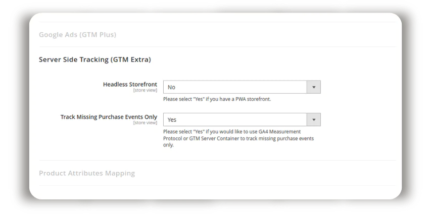 If customers use AdBlockers or don’t accept cookies their purchases are simply missed. This results in inaccurate data reports and ineffective campaigns. Is there a solution? Magento 2 Google Tag Manager enables you to use server-side tracking only for missing orders. You’ll capture every single purchase to leverage your marketing strategies while still using web container tracking. Note: if you use a headless PWA storefront, you’ll benefit from the REST API endpoints our Magento 2 GTM Extension offers for server-side tracking.