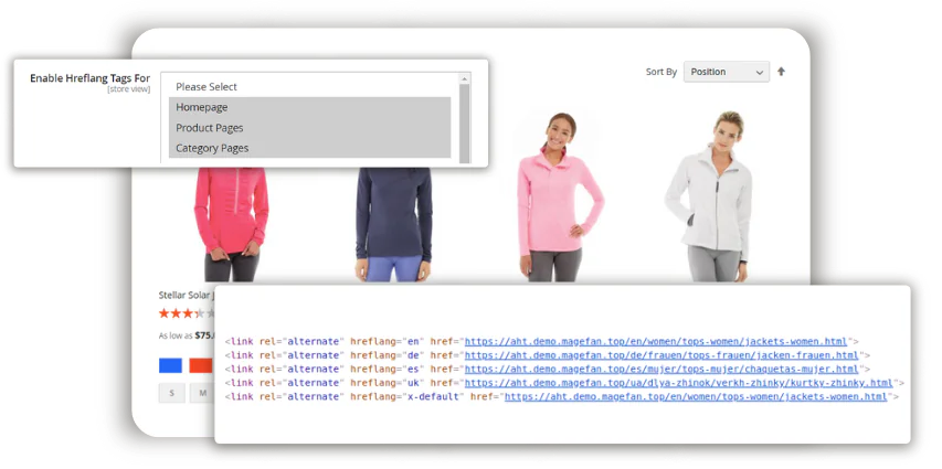 Magento 2 Hreflang Tags Extension is a solution that allows you to add hreflang tags to your pages automatically or through the admin panel. No need to dive into code to add, edit or delete hreflang tags. We do it for you. Notify search engines about page variants in different languages and let them pull out a localized page in search. Boost your multi-language store with the Alternate Hreflangs Tags for Magento 2!