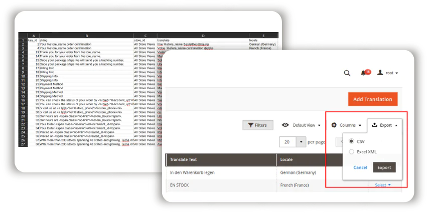 - Import and export translations via CSV or XML