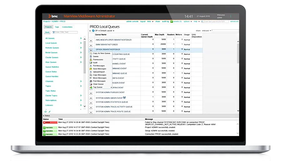 Ensure application and infrastructure performance through middleware management BMC middleware management software provides real-time monitoring and administration for messaging-oriented middleware environments including IBM® MQ, Integration Bus (IIB), App Connect Enterprise (ACE), Apache ActiveMQ, and DataPower and TIBCO Enterprise Message Service (EMS).