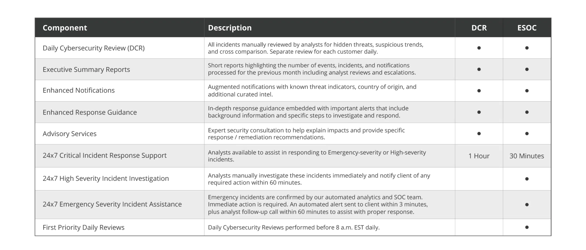 Your business may need to meet and maintain regulatory compliance, a requirement that is becoming more complex over time. Failure to comply doesn’t just equate to fines, it can also result in breaches. XDR services, along with daily SOC reviews and purpose-built reporting, can help organizations meet regulatory requirements for cybersecurity monitoring while minimizing breaches.